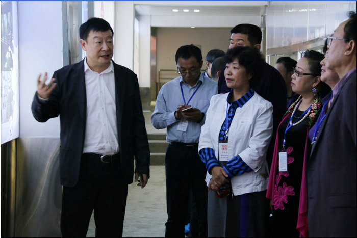 2015年11月16日,乳品企业家考察团到公司参观,图为王总在参观走廊为各位老总介绍乳业发展史,并讲解企业文化。