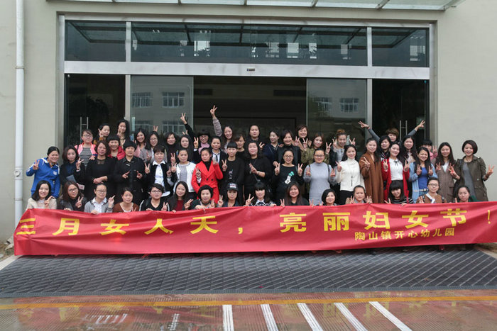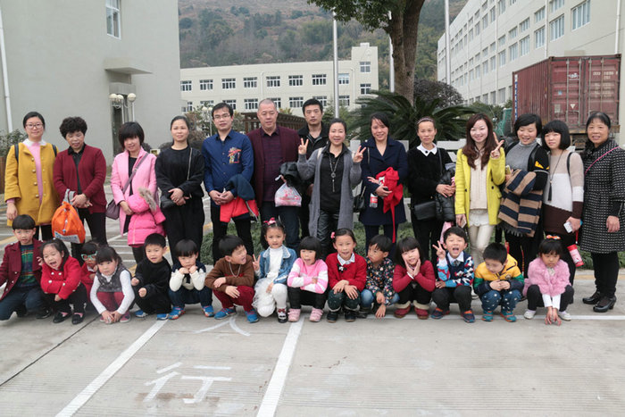 图四:陶山开心幼儿园的老师及学生家长的合影