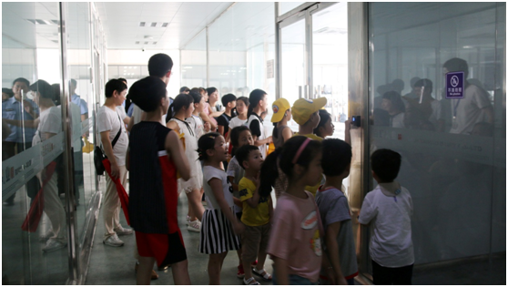 第二站,吴经理带领小朋友们参观生产车间。小朋友们对生产设备充满好奇,生产助理吴建文用简单易懂的语言为小朋友们一一介绍了设备的名称及作用,并讲解了炼乳生产的知识。