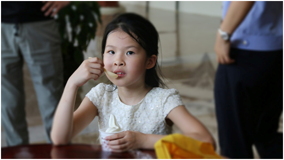 最后一站,小朋友们回到大厅,技术部门张傅为小朋友们带来了公司新研发的冰激凌。小朋友们品尝着美味的冰激凌,结束了今天的活动。