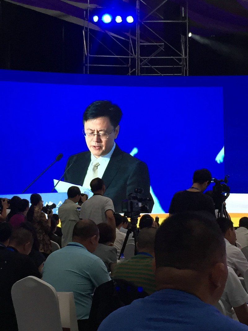 在观看奶业宣传片后,黑龙江省副省长致辞,农业部副部长、食品药品监管总局领导、工信部领导、承办方飞鹤乳业总裁分别上台演讲。