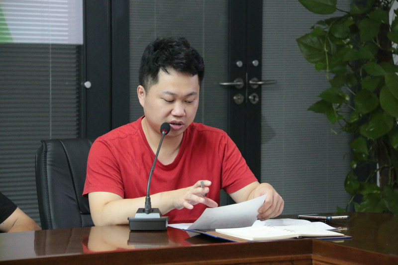 生产部车间质量管理助理吴建文针对车间生产工艺参数、劳动纪律和现场卫生三个方面进行知识讲解,并通报了点检工作情况。