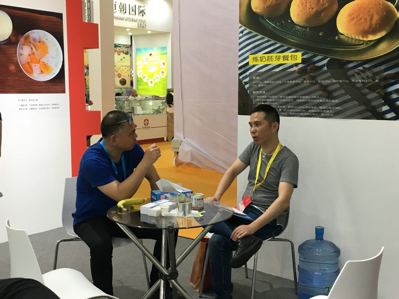 公司以百强系列炼乳为主打产品,以烘焙辅料为销售方向。销售经理们与一位位商客现场沟通洽谈,收集了潜在客户信息,开拓了新市场。