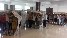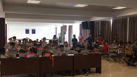 中午,小记者们在公司食堂吃了午餐。之后,他们玩起了小游戏——无敌风火轮,结束了采风活动。