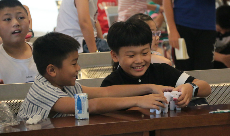 在有奖竞猜环节,我们的奖品小奶牛引发了小记者们强烈的兴趣,纷纷举手回答竞猜题目。
