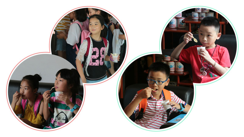 小记者们排着队,品尝着酸奶冰激凌。