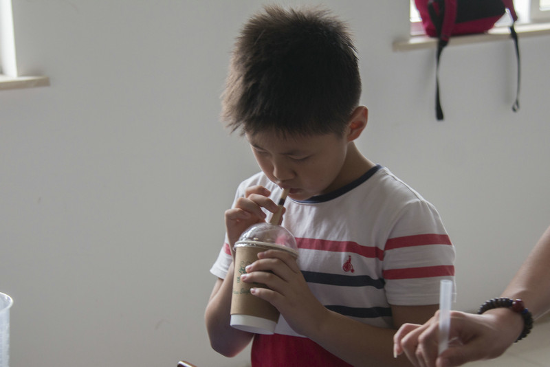 百强乳业新设了DIY教育基地,这里准备了百强炼乳、红茶、杯子等材料,学生们5-6人一组,自己动手制作奶茶,好玩又好喝。每组学生都有专业的工作人员在旁边指导操作,保障了活动顺利进行和学生的安全。