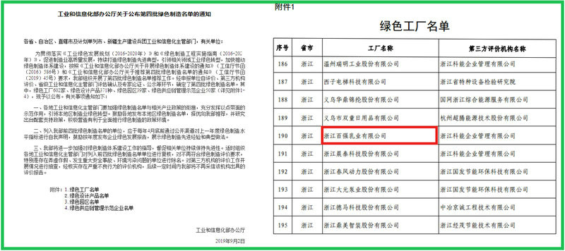 9月12日,国家工业和信息化部在网上公布了第四批绿色制造名单,浙江百强乳业有限公司榜上有名,顺利跻身国家级“绿色工厂”序列。