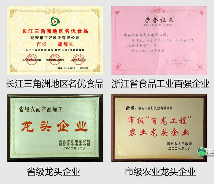 二十年来,公司获得了“中华老字号”称号,2008年获“浙江老字号”称号,2004年获中国原产地证准用证书,2002年获浙江省农副产品深加工龙头企业,2009年获浙江省工商企业信用AAA级“守合同重信用”单位,2007年获温州市级“百龙工程”农业龙头企业,2012年起连续多年获温州市食品工业五十强企业,1998年至2005年连续被瑞安市政府评为星级企业,2013年荣获2012年度五十强农业龙头企业、瑞安市第三届劳动关系和谐企业、2012年度诚信民营企业等荣誉。尤其是2015、2016年,获得了浙江省省级骨干农业龙头企业、浙江省绿色企业、浙江省创新型示范中小企业、浙江省优秀工业产品、浙江省著名商标(百强)、温州市劳动关系和谐企业。