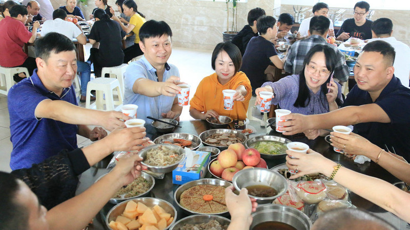 大家举杯共庆佳节快乐,同时也感谢公司给予大家的关爱,给予大家家庭般的温暖相伴。